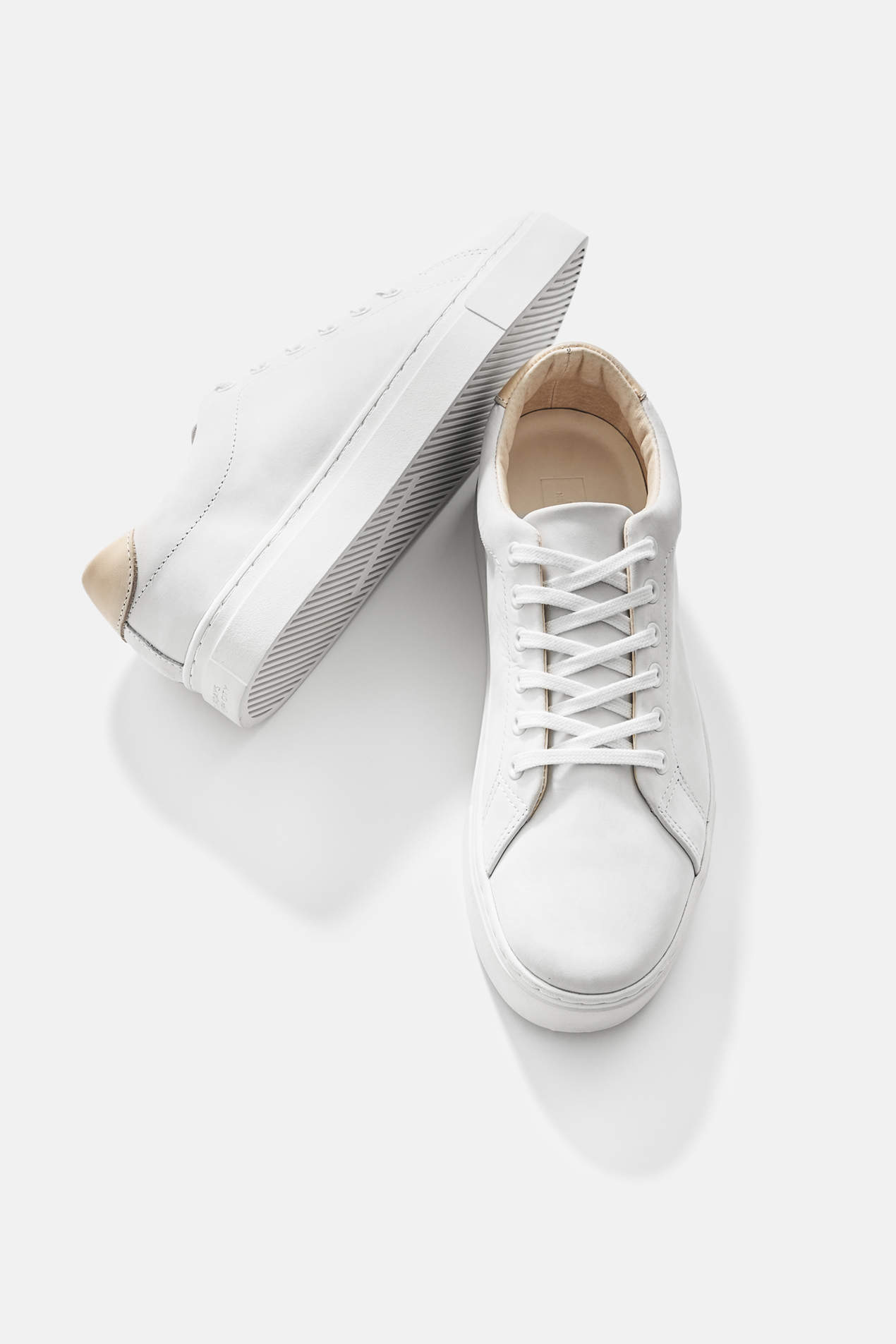 A classic leather sneaker, the Derek is perfect for any occasion. For Spring 2017, the Dereks are crafted in a soft Nubuck leather with a white sole and a clay colored heel.
